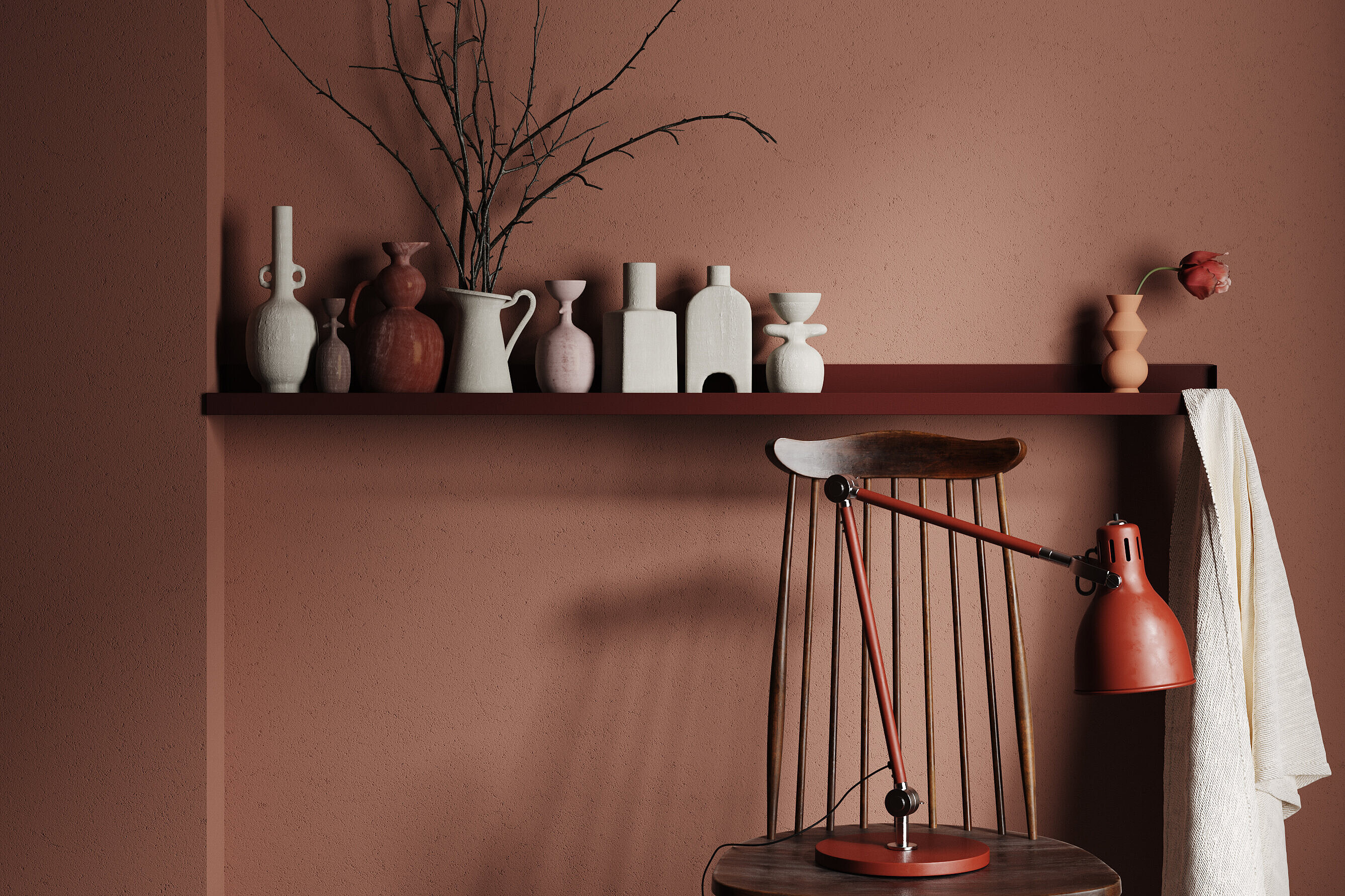 La terre cuite contribue à créer un aspect terreux et chaleureux, tant en termes de matériau que de couleur. La structure hautement pigmentée de la terre cuite et la couleur de base profondément saturée mais délavée par le soleil créent un look naturel et sophistiqué. Des nuances telles que le blanc de coton, l'ocre, le rouge brique et le brun sont combinées dans une palette de couleurs terreuses. La terre cuite symbolise la terre sur laquelle nous vivons et notre désir profond de la protéger.