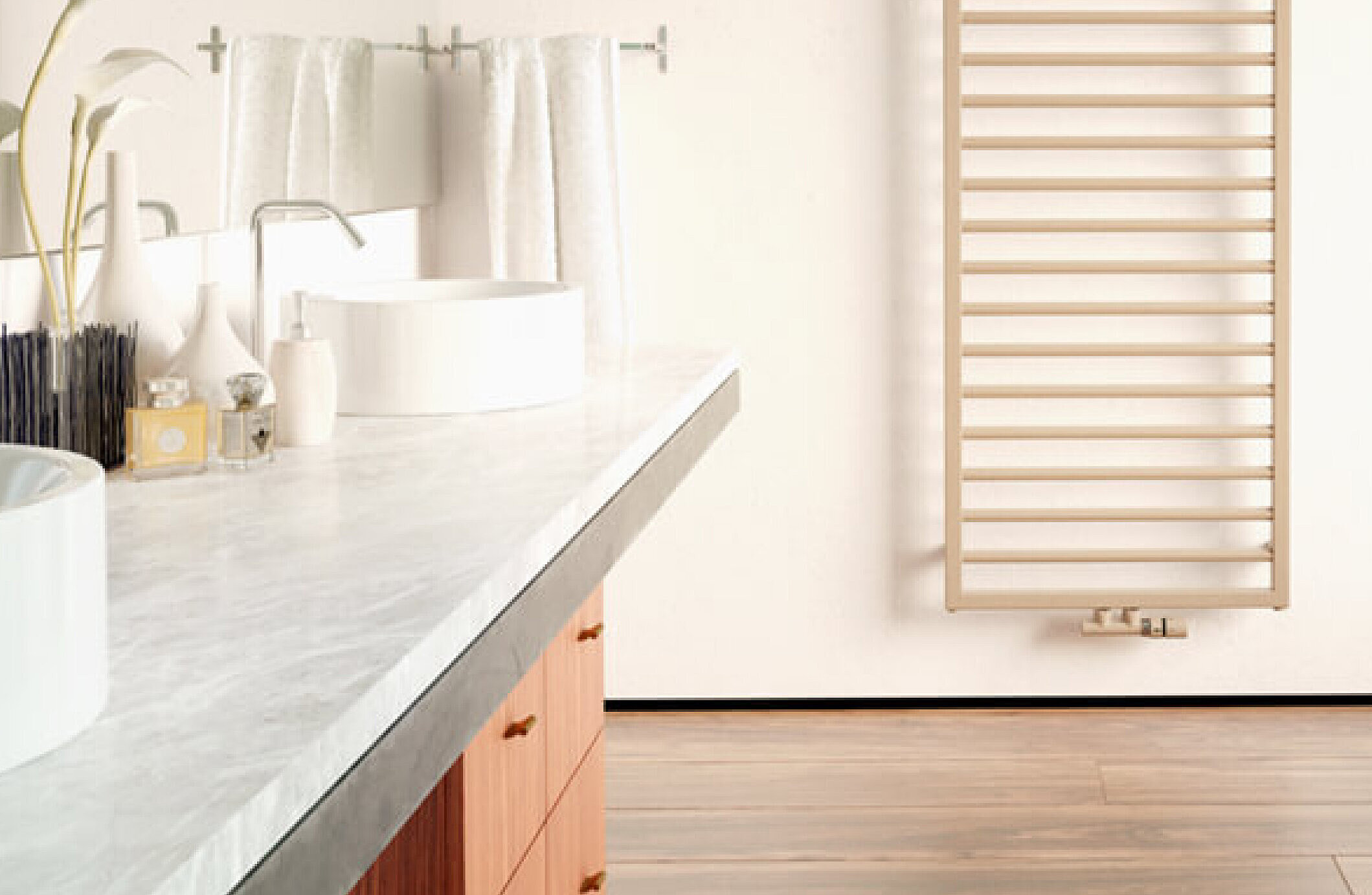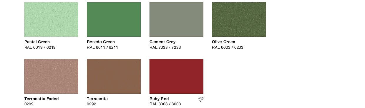 Harmonie et tranquillité, selon les dernières tendances en matière d'habitat et de salle de bains. Les couleurs tendance de la palette de couleurs chaudes apportent une atmosphère naturelle dans chaque pièce. Par exemple, créez un look méditerranéen dans votre salle de bains avec les couleurs Olive Green ou Terracotta.