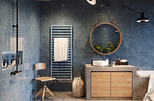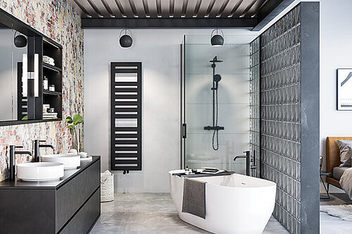 Clair, analytique, puriste. Les couleurs principales de la palette de couleurs Cool sont modernes, intemporelles et robustes. Idéaux pour les pièces à l'aspect industriel cimenté ou bétonné, mais aussi sur un mur blanc, les radiateurs en noir mat et gris anthracite, par exemple, sont d'un bel aspect.