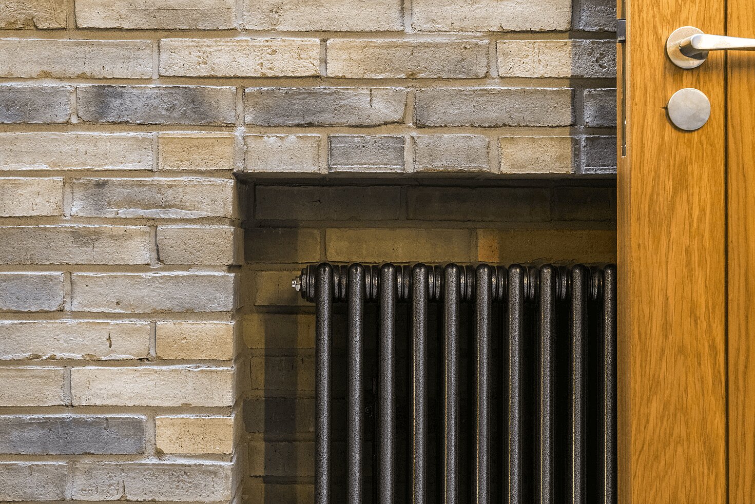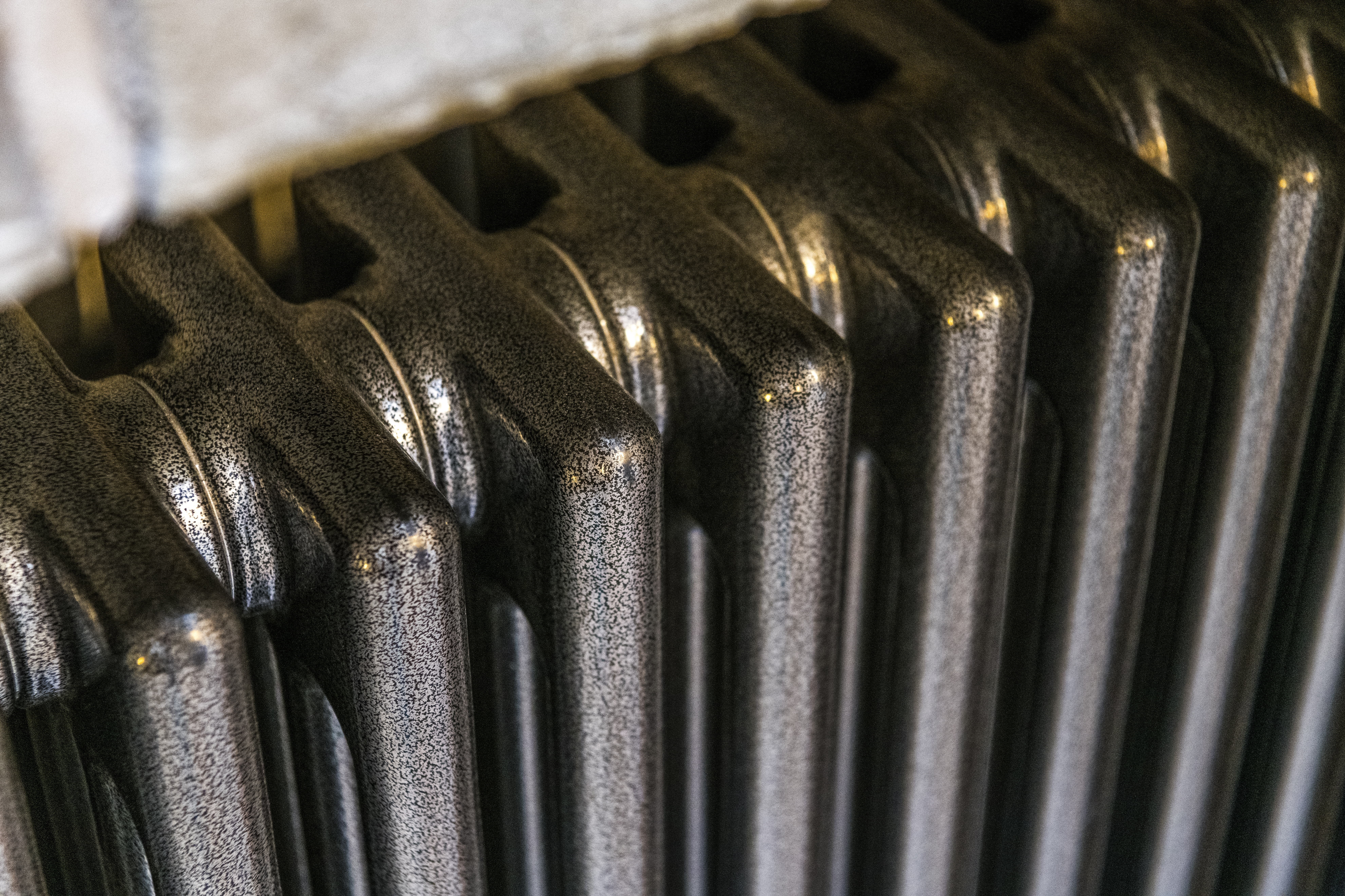 En matière de chauffage, le choix s'est porté sur le Zehnder Charleston dans une teinte spéciale noir-argent martelé. Un choix qui n'a rien de farfelu, car ce radiateur colonne emblématique ne se démode jamais avec son look intemporel. Il s'accorde parfaitement avec l'atmosphère sobre et authentique recherchée par les architectes à Het Steen. Les radiateurs s'intègrent donc parfaitement dans la pièce, tout en apportant une touche finale élégante.
