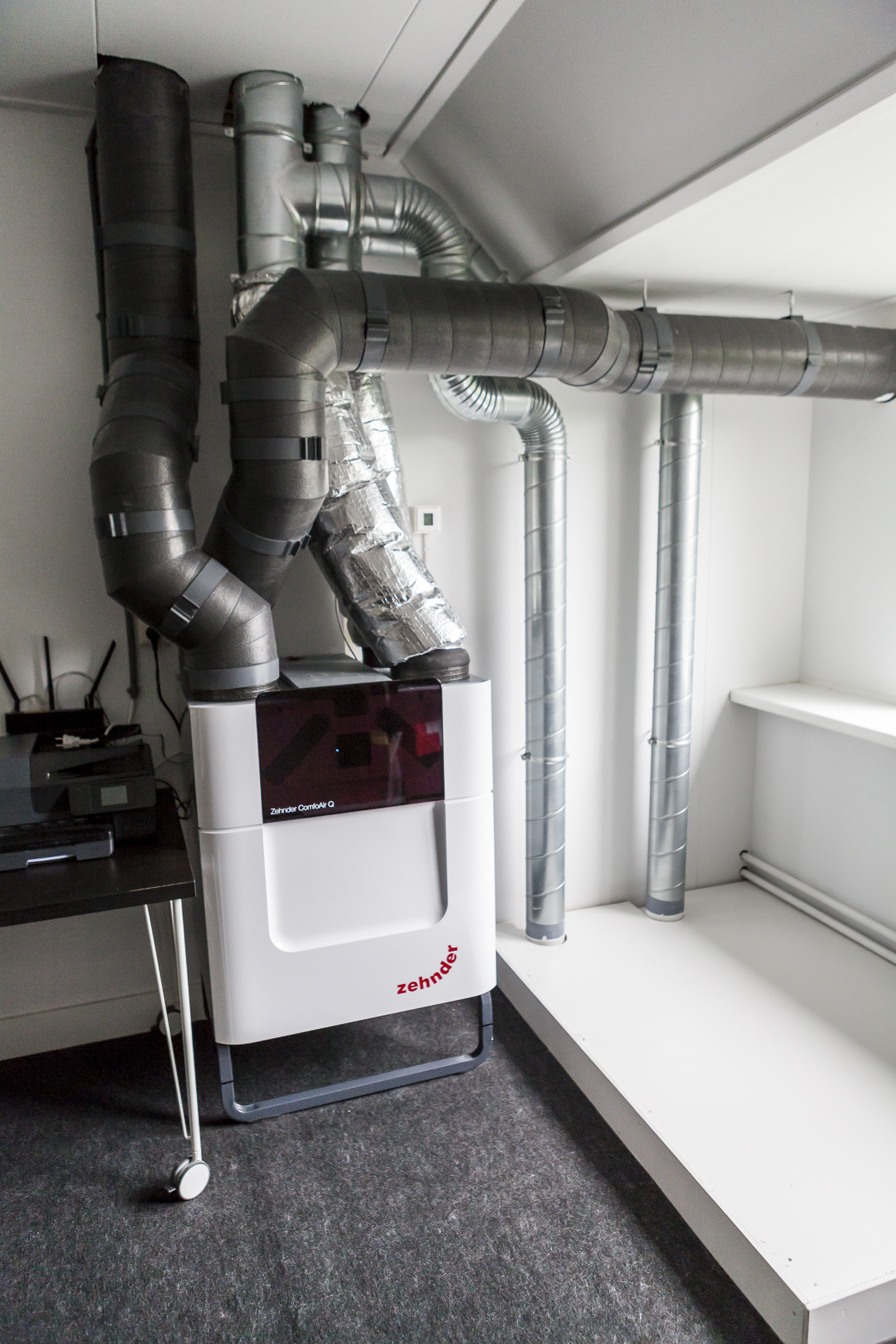 Outre les radiateurs, le système de ventilation équilibrée Zehnder ComfoAir Q joue également un rôle crucial dans le confort de vie de la Villa Oostenburg. Comme il n'était pas permis de percer les plafonds ou les murs, une solution innovante a été trouvée en incorporant des bouches d'aération dans des éléments existants tels que des bibliothèques. Le monument reste ainsi intact, tout en fournissant au bâtiment de l'air frais et filtré 24 heures sur 24 et 7 jours sur 7.
