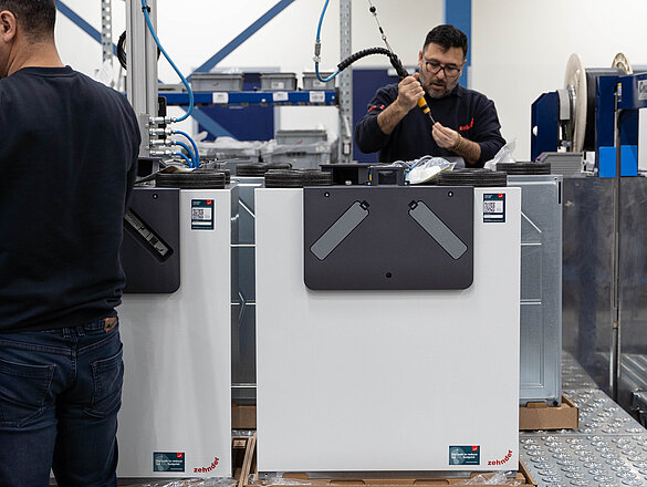 Un exemple concret : une rue avec 16 maisons à rénover. Défi : chaque maison est équipée d’un système de ventilation circulaire avec récupération de chaleur. Méthode de travail : en collaboration avec l’installateur, nos collègues des différents départements ont évalué quelles pièces des anciennes unités avec récupérateur de chaleur pouvaient être réutilisées ou remises à neuf. Ces systèmes ont ensuite été très intelligemment complétés par des ventilateurs ComfoAir provenant d’un autre projet de rénovation. Le résultat ? Les 16 maisons sont équipées d’un produit 100% recyclé, qui est comme neuf. Avec une garantie de 100%, ce qui n’est pas négligeable.