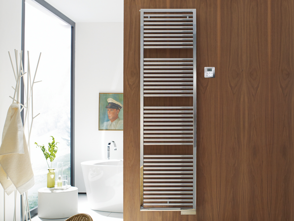 Le radiateur de salle de bains Zehnder Universal est incroyablement polyvalent. Le profilé carré entoure entièrement les tuyaux ronds, créant ainsi un ensemble harmonieux. Grâce à sa proximité avec le mur, l'Universal est également la solution idéale pour les niches ou les salles de bains à l'espace restreint. Le radiateur est également disponible comme séparateur de pièce, ce qui vous permet d'aménager votre espace de manière décorative.