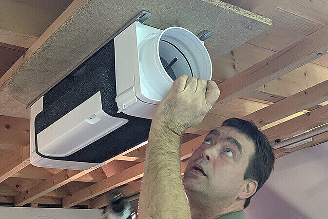 Les unités de contrôle d'air du ComfoVar Aero peuvent être installées séparément, de manière flexible, au plafond ou au mur. Elles occupent donc beaucoup moins d'espace qu'une unité de ventilation équilibrée. Idéal pour les appartements où chaque mètre carré compte