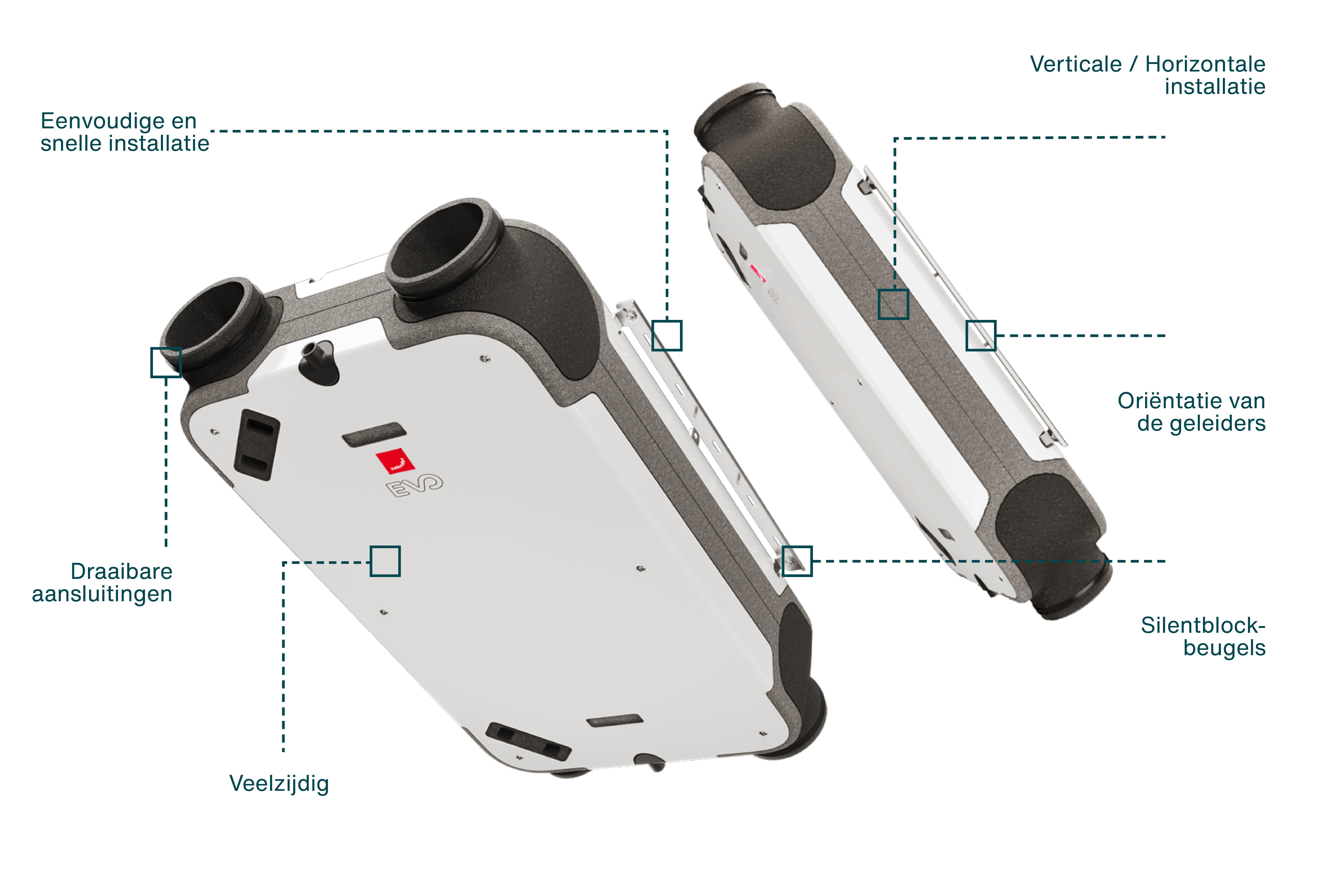 De Zehnder EVO kan tijdens de installatie heel eenvoudig op verschillende manieren worden geconfigureerd.